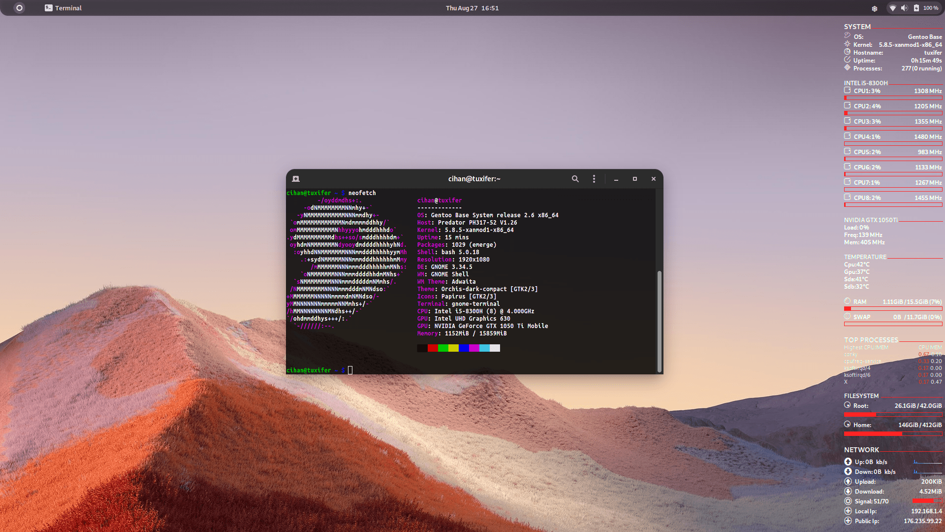 Sağda duran sistem bilgilerini gösteren aracın ismi nedir? Buna benzer bir şeyler kurmak istiyorum ben de.