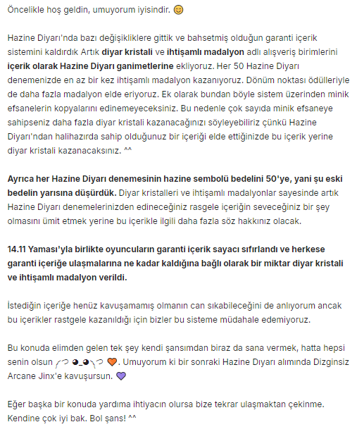 Evet 59 kere denedikten sonra 60. deneme de garanti olarak skini elde ediyorsun ve ek olarak sadece tft değil yeni gelicek jinx skini için de aynı sistem kullanılacak, 80 deneme hakkı var ve 79 kere deneyip çıkartamazsan 80. denemede garanti olarak çıkıyor.