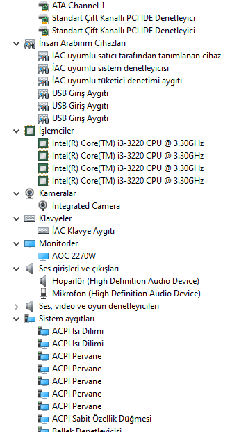 Arama yerine Aygıt Yöneticisi yazın açılan yerden görüntü bağdaştırıcısını açıp özellikler deyip SS atın.