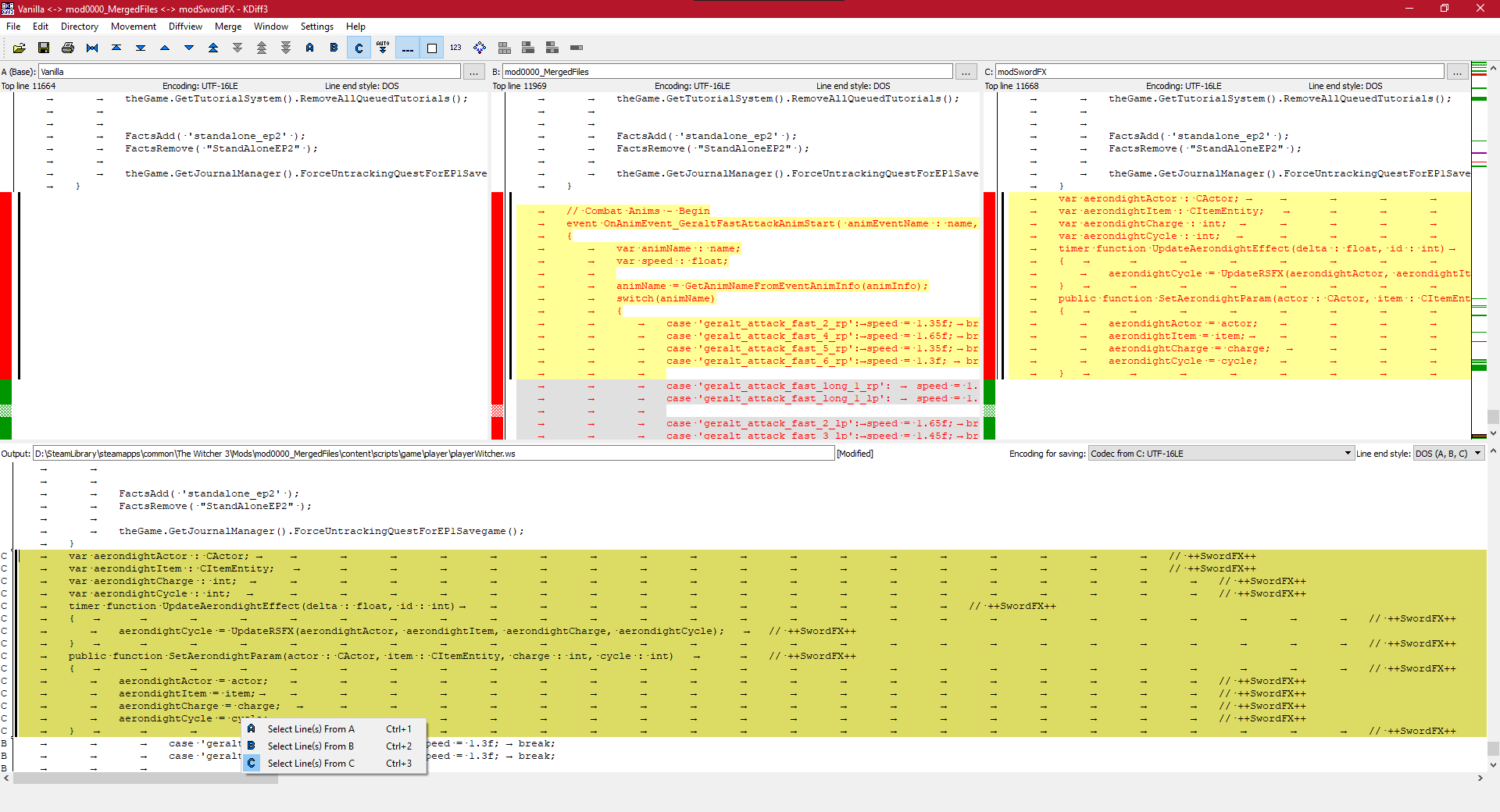 Merge Conflict yazan yere sağ tıklıyoruz ve C'yi seçiyoruz. Böylece modumuzu aktif ettik. Ama çakışma gitmedi. Bu modun diğerleriyle uyum sağlaması için ekteki gibi yine sarı yere sağ tıklayıp B'yi seçiyoruz bu seferde. Böylece modlarımız birleşti.