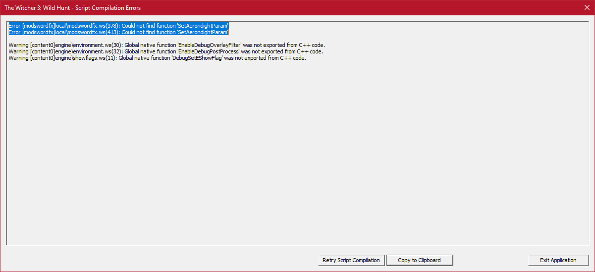Hangi modun sorun çıkardığını görmek için Witcher 3'e girmeniz gerekiyor. Uyumsuz bir mod varsa oyun açılmaz ve hata verir. En üstte ise sorun çıkaran modun adı görünür.Mod düzgün birleştirme yapmama rağmen hata veriyor.