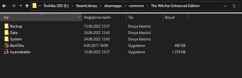 Merhaba. The Witcher Enhanced Edition oynamak için Türkçe yama indirmiştim fakat yeni oyun derken Save hatası veriyor. Araştırdığımda doğrusunun Türkçe yamanın silinip oyunu başlatmak daha sonra yamayı kurmak olduğunu öğrendim. Türkçe yamayı dosyalarda bulamıyorum. Nasıl silebilirim, yardım eder misiniz?