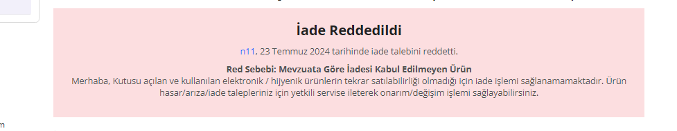 Hocam dediğiniz gibi yazdım ama hijyen kısmını değiştireyim mi çünkü bana hijyen demediler elektronik ürünlerin ambalajı koruma bandi açıldıgı için almadik dediler tekrar tekrar.