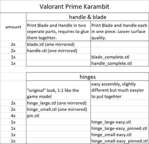 Note: Remember to mirror half the parts before printing. Otherwise you end with two half knifes