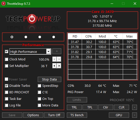 Oyunlarda 10 dakikada bir 1.59 GHz'ye düşüyor ve ardından oyun FPS'i 50-60'a kadar birden düşüyor. ThrottleStop işe yaramadı ve güç seçeneği yüksek performansta ayarlı.