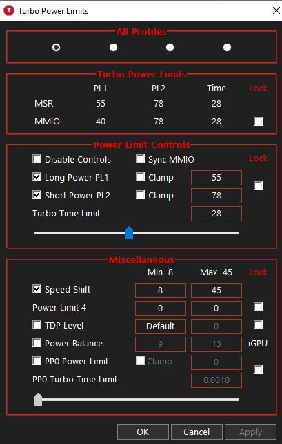 Eğer Power Throttling varsa Clamp'leri devre dışı bırakın ve bence biraz arttırabilirsiniz güç limitlerini. 120 ayarlayabilirsiniz ikisinide. Clamp olmasın.