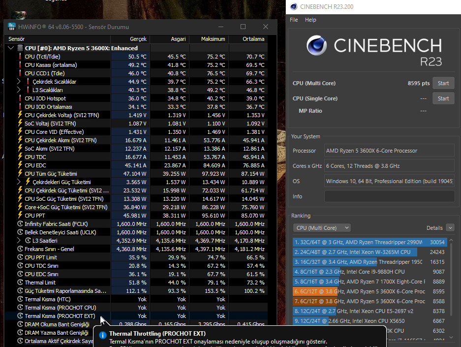 İşlemcimde Throttle' mı yiyorum? Kendim 3600x kullanıyorum ve çıkan çoklu çekirdek puanı internette sıradan bir 3600'ün bile gerisinde kalıyor, sebebi ne olabilir ?