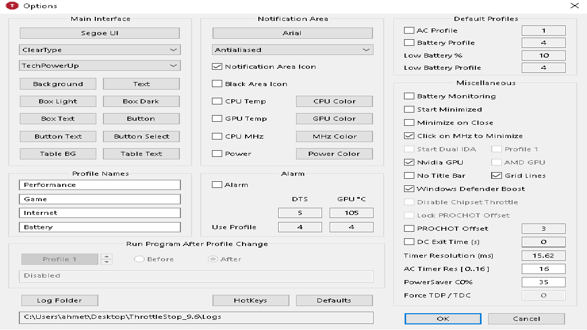 ThrottleStop Ana Ekranındaki Settings kısmından başlayalım.