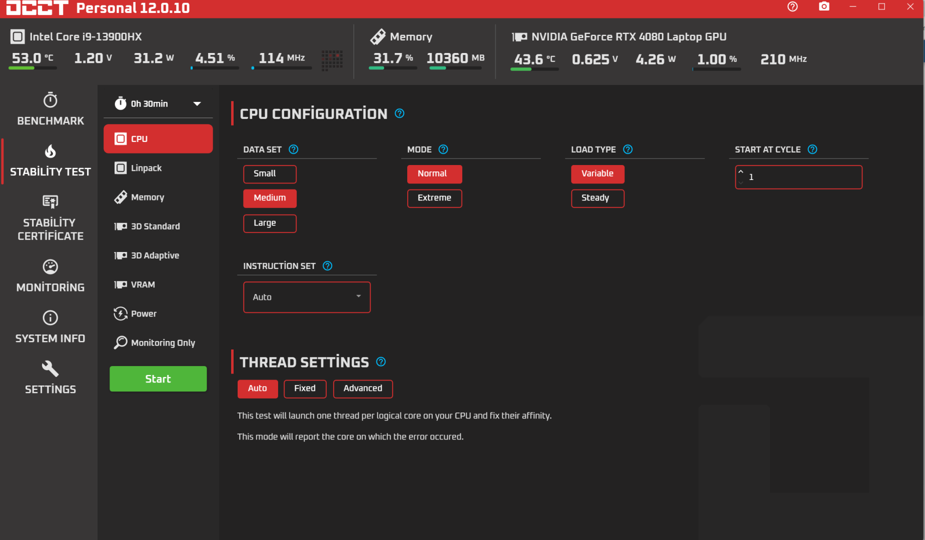 Eğer güncelleme geldiyse uygulamaya bilmiyorum. Power testinde pek seçenek yoktu sanki. Dilerseniz OCCT'den ekran görüntüsü atabilirsiniz eğer önünüzde benim dediğimin dışında seçenekler varsa.