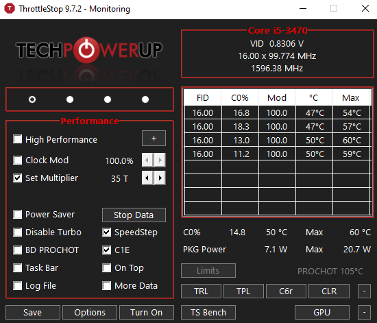 ThrottleStop'ta BD Prochot tiki kaldırılmasına rağmen işlemci frekansı düşük