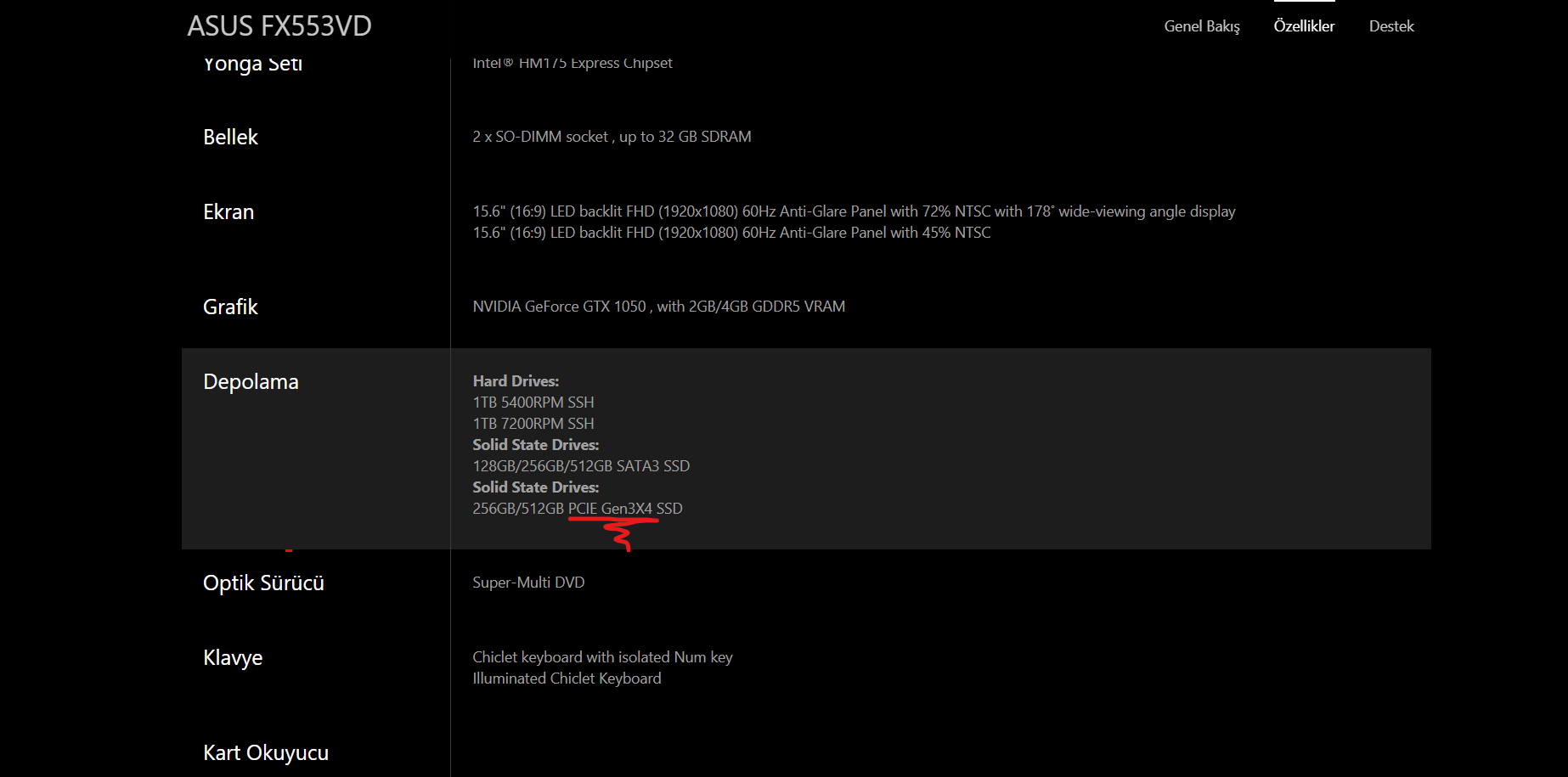 Asus FX553VD dizüstü bilgisayarımda;
