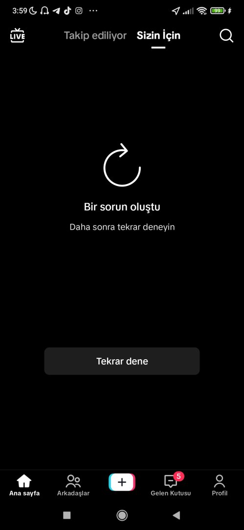 Merhaba TikTok'ta aniden internette hiçbir şekilde sorun yokken birden bir sorun oluştu şeklinde yazı geldi. Şimdi ise hiçbir şekilde tiktoka giremiyorum arama kısmına bir şey yazsam sonuç çıkmıyor açılıyor ama çalışmıyor hata veriyor. Aynı şekilde mobil veri açtığım da da böyle acaba bu sorunu yaşayıp da çözen varsa ulaşabilir mi?