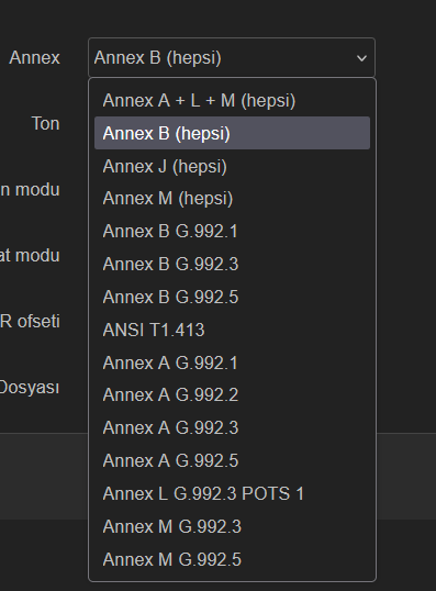 @777608 Hocam bu yukarıda atmış olduğum Annex profillerinden hangileri upload odaklı sizce? Şu anki DSLAM modu Annex B.