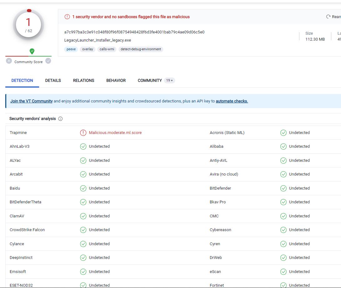Ben kendisini kullanıyordum ama silip bastan yüklicektim ve dedim VirusTotal'de bir şey çıkar mı bir baktım bir tane var ama anlamadım görüsleriniz nelerdir?