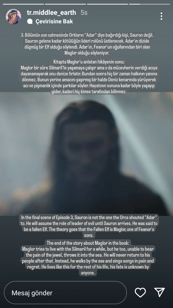 Lore hakkında çok aşırı bir bilgim yok ancak meteorman lore'a tamamen aykırı diziyi yapanlar uydurmuş resmen. Adar güzel olmuş anlamışsınızdır zaten sauronun formlari var en sonda elf formunda gördük. Ancak bana göre dizinin bir heyecani yok çünkü zaten filmlerden biz güney topraklarının işgal edileceğini veya lore'dan numenor'un manipüle edileceğini biliyoruz. Sadece bildiğimiz şeylerin öncesini görmek bana pek bir heyecan vermiyor açıkçası. Ama Yüzüklerin efendisi hakkında cok az farklı alanlarda eser varken dizi çıkması güzel oldu en azindan açlığımızı biraz giderdi.