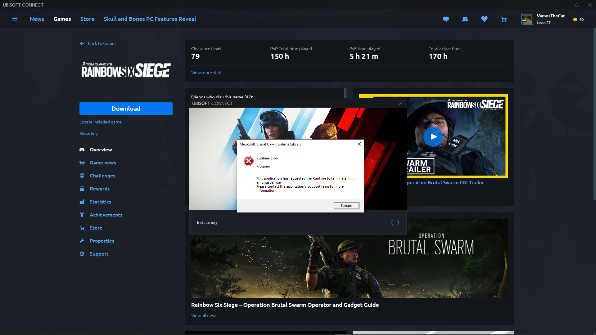 Tom Clancy's Rainbow Six: Siege runtime error hatası