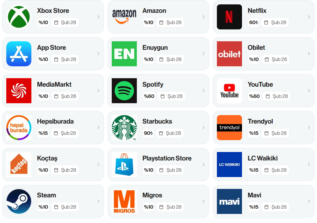 Attığınız görsel Papel uygulamasına mı ait?Tosla'yı bir ara kullanıyordum pek beğenmedim fazla bir avantajı yok diye şu an nasıl bilmiyorum ama papel kullanmanı öneririm birçok cashback var daha yeni bir uygulama henüz banka hesabından para yüklenmiyor veya kart ile. ATM'den yüklemek gerekiyor.