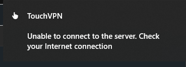 Merhaba. Touch VPN indirdim ve connect tuşuna bastım. Fakat sağ altta şöyle bir yazı çıkıyor: