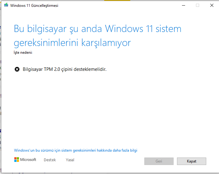 Sisteminiz TPM 2.0 destekliyor. Sadece siz TPM 2.0'ı açamadınız.