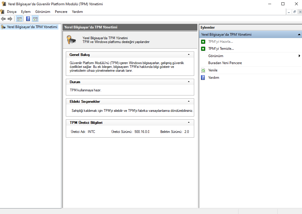 Merhaba dostlar, Windows 11'e geçmek için TPM 2.0 ayarını BIOS'tan aktif ettim, her yolu denedim fakat msinfo32 hariç her yerde açık gözüküyor. TPM şu an açık mı?