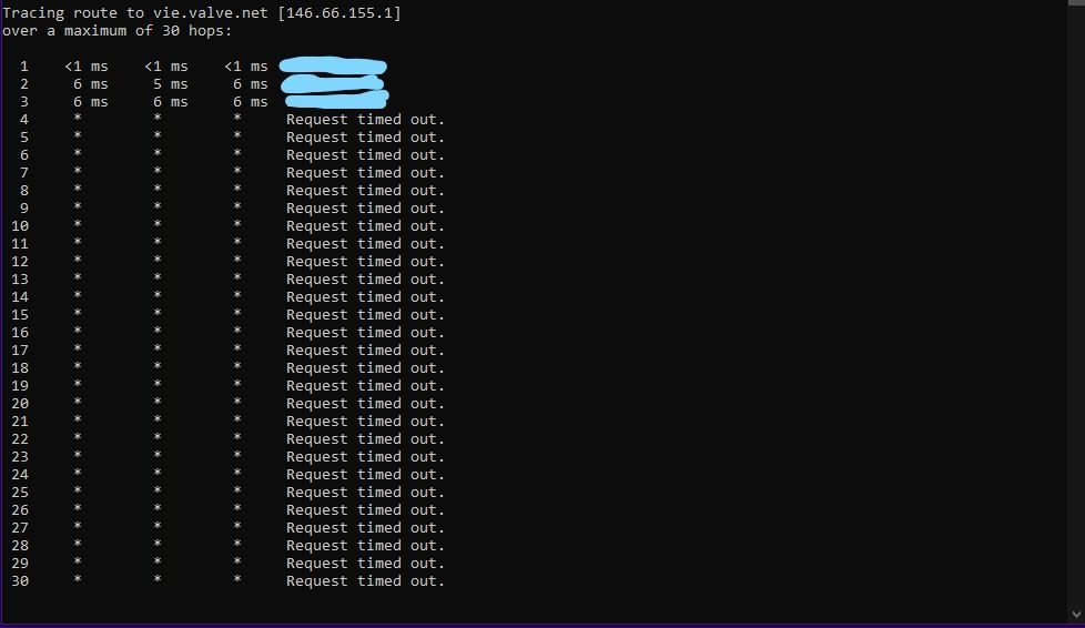 1 - 1.5 aydır Tracert testi yaptığım zaman görseldeki sorunu almaktayım. Google ve diğer çoğu sunucuya Ping atamıyor ve "Request timed out" hatası alıyorum. Aynı zamanda Ping değerim iyi olmasına rağmen sadece LoL'de anlık Lag sorunları oluyor. Bu durumu nasıl düzeltebilirim? Yardım eden, çözüm önerisinde bulunan herkese şimdiden çok teşekkür ederim.