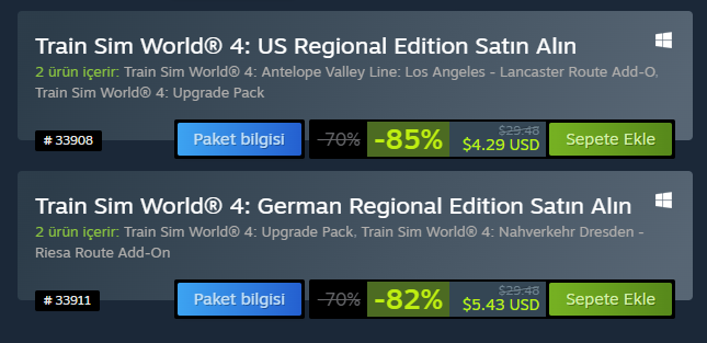 Selamünaleyküm Train Sim World 3 ve 4 indirime girmiş.