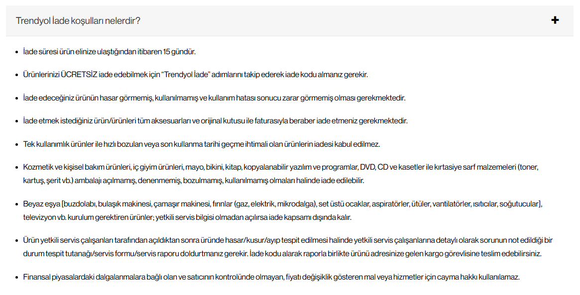 Fakat tüm bunlardan önce eğer satıcı Trendyol değilse satıcıya ulaşmanızı öneririm. Satış sözleşmeniz içerisinde satıcı bilgilerinin yer alması gerekiyor.