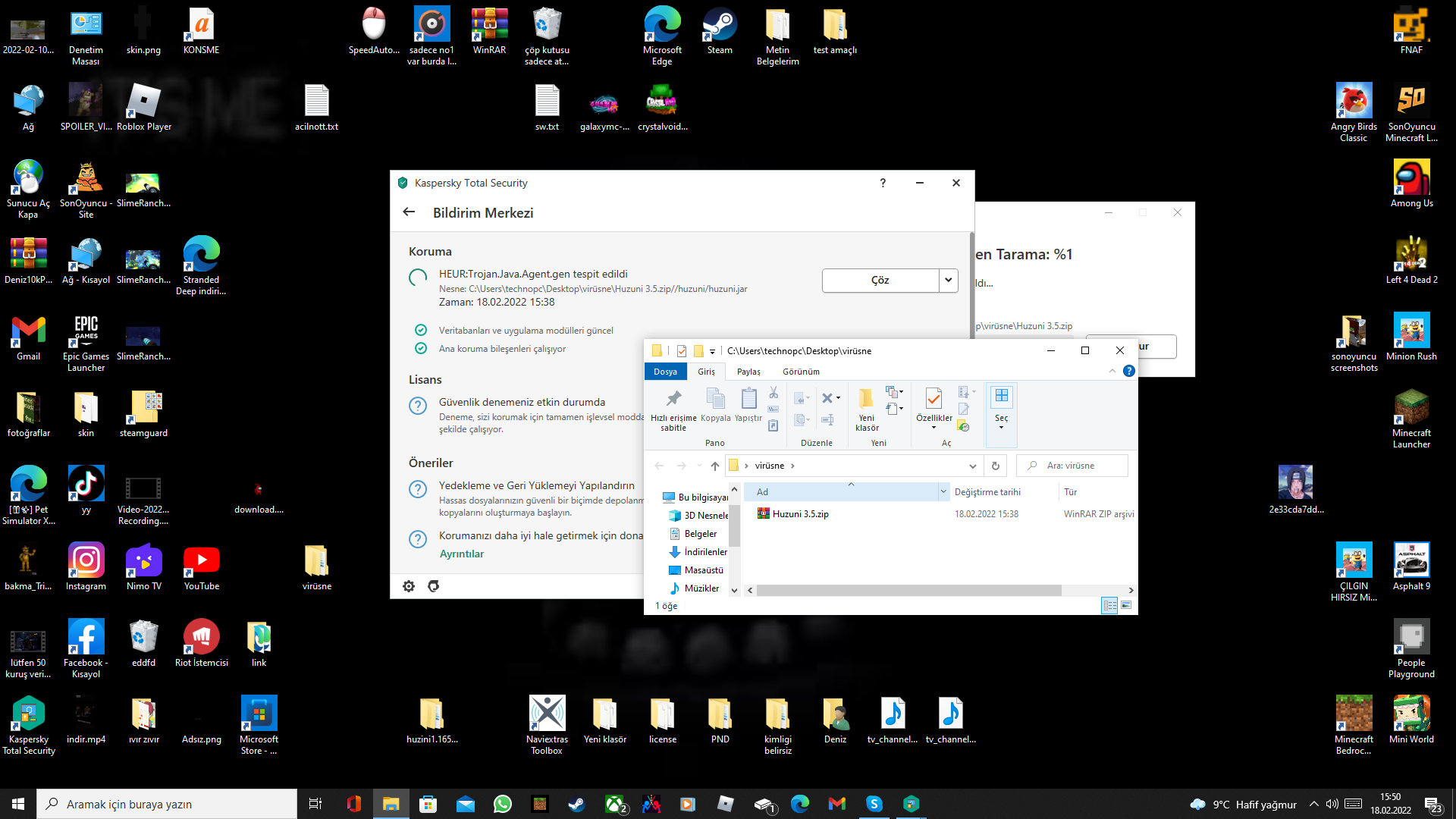 Merhaba ben bugün arkadaşımın attığı dosyayı Kaspersky trojan buldu ve ve silinmedi. %50'de kaldı. PC'yi yeniden başlatmadan önce dosyayı masaüstümde bir klasöre atmıştım o klasoru tamamen sildim. Sorun olur mu?