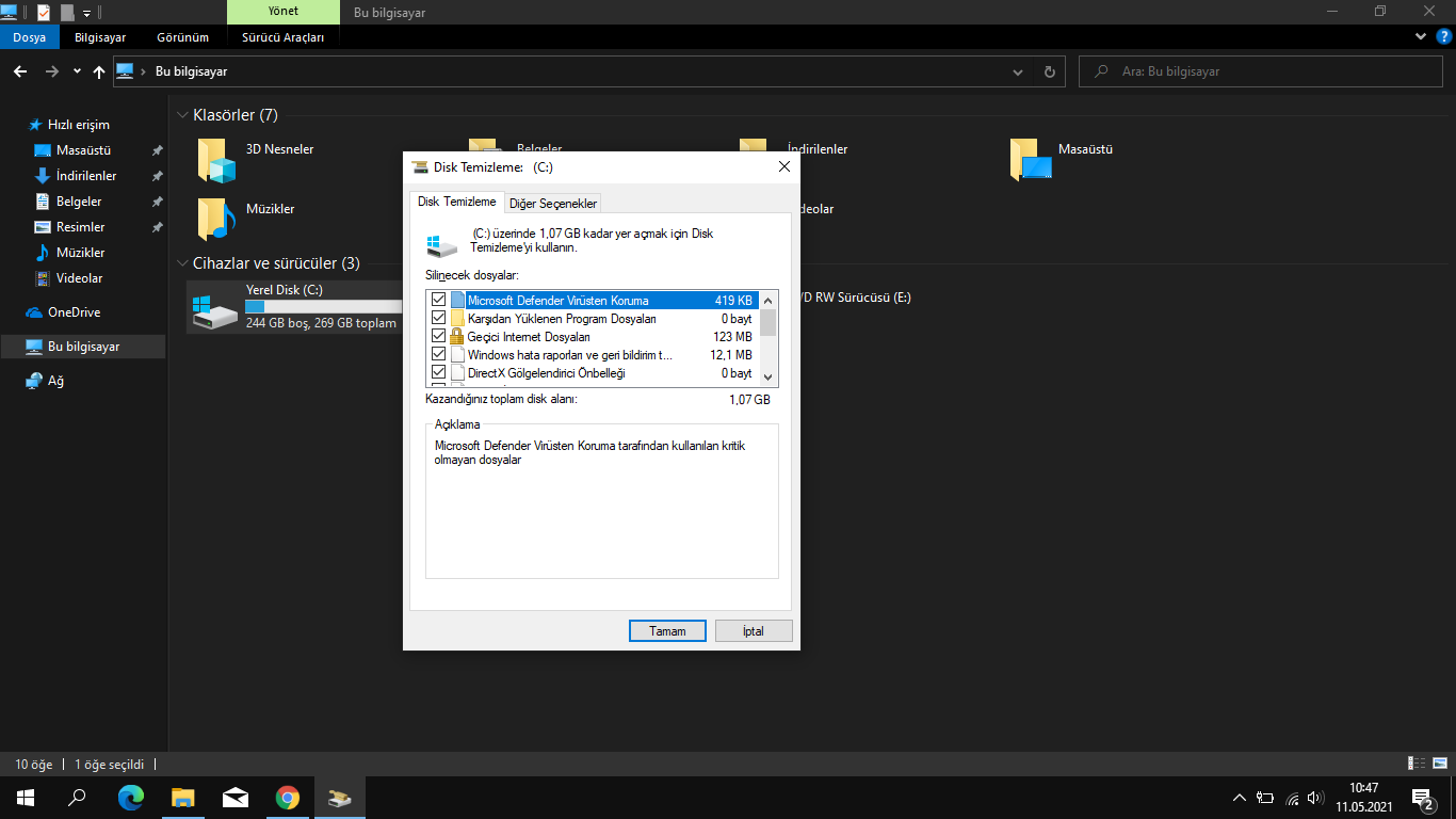 Bu bölümde tüm seçenekleri aktif hale getirip "tamam" yazısına basın. Dikkat edin, tüm seçenekleri aktif hale getirdiğinize emin olun. Bu işlem hem önceki Windows yüklemesinden kalan dosyaları, hem de gereksiz birçok dosyayı temizleyecek.