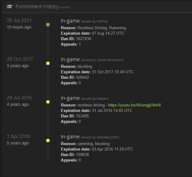 Bu konuyu açtıktan 5 yıl öncesinde kadar toplam 4 defa Truckers MP'den yasaklanmışım. Bu yasaklanmalar ben çok küçükken yaptığım hatalar. Açıkçası ban yeme korkum yoktu. Ancak yaş ilerledikçe insanlar bazı şeylerin anlamını anlıyor. Truckers MP kurallarında 5. Ban'ı yediğimizde Perma(Sınırsız) ban atılıyormuş. Ayrıca kurallarda şöyle bir madde geçmekteydi.