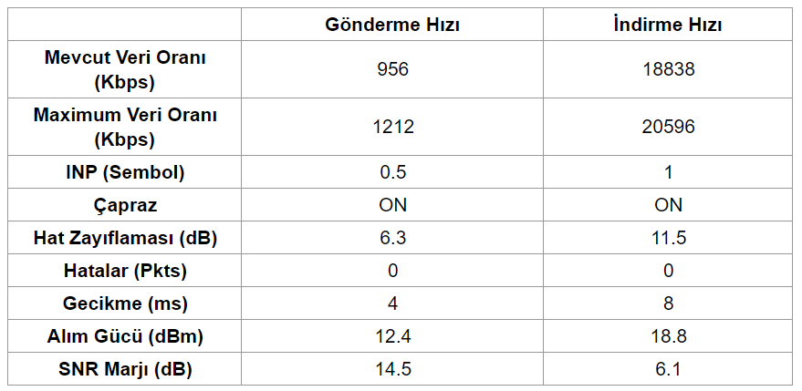 Hat değerleri ADSL için gayet iyi.