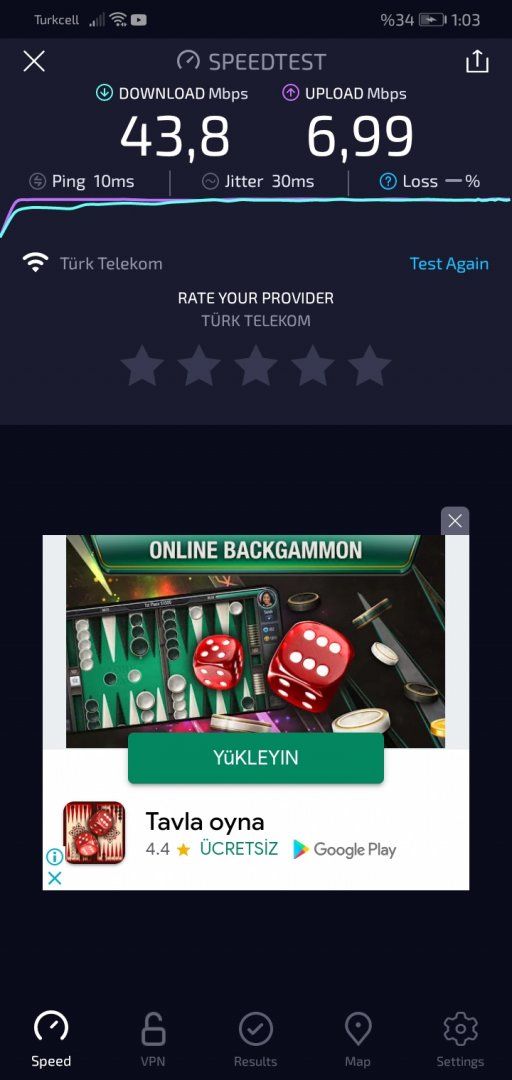 50 MBPS VDSL paketini kullanıyorum. Kablosuz olarak bağlandığım speedteste bak sadece.