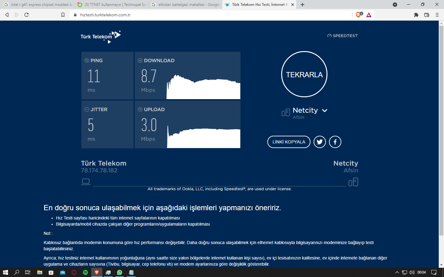 Hız değerleri o kadar çok etmene bağlı ki, siz o tüm etmenleri doğru yaptığınızı ama firmanın ise tek işini yanlış yaptığını söylüyorsunuz böyle bir şey sizce gerçekten mümkün mü?