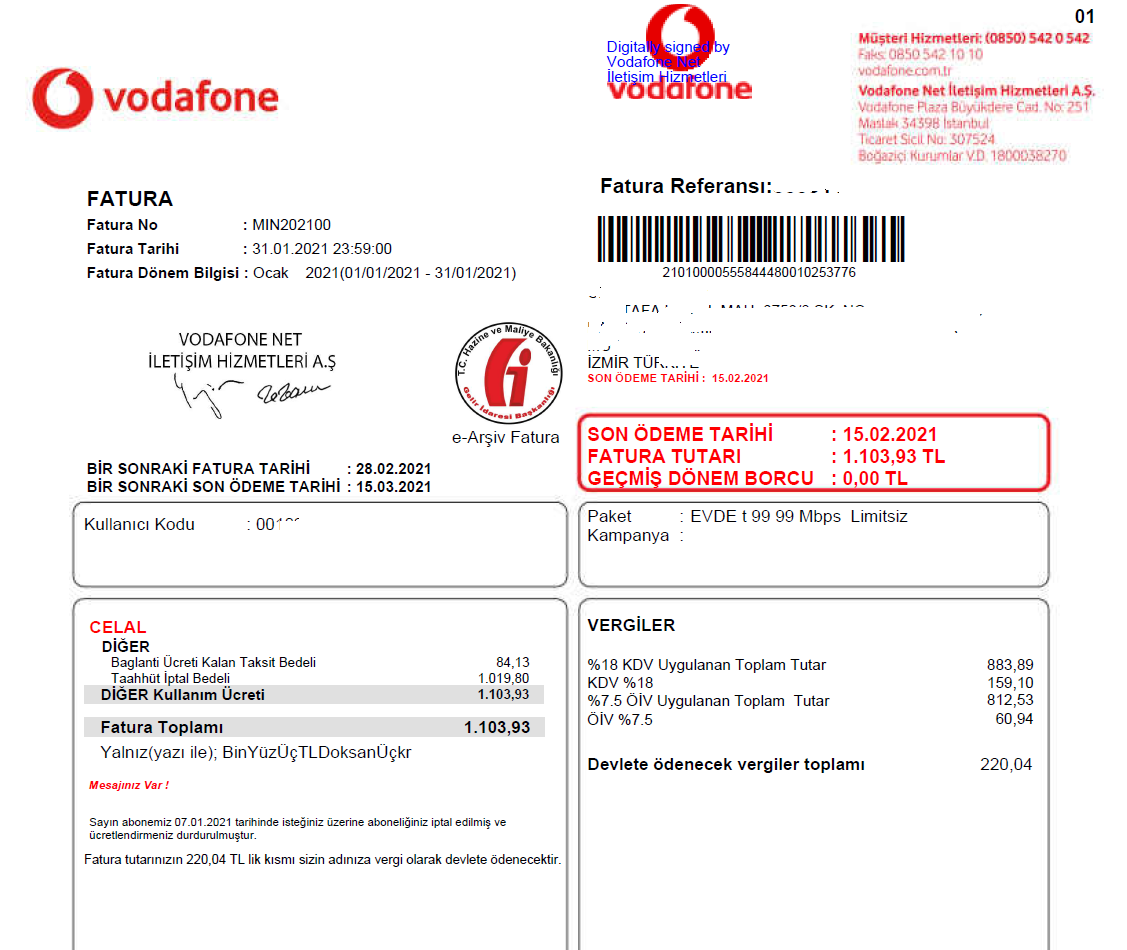 Vodafone direk taahüt iptal yazdı, 6 ay cevap gelmedi THH den ama faiz işletemeden faturayı iptal ettiler.. 10 kere aradılar dilekçeni geri çek diye, çekmedim emsal olsun başkaları da faydalansın diye.. Ama bir alttaki foto da göreceğin üzere, Kablo net taahüt iptal değil, AKtivasyon faturası kestiler.. Normalde bunu bahsettiğim mevzuat kapsamıyor ama ben bu konularda tecrübeliyim.. süreci telefonda verilen bilgilerin hatalı olması dahilinde hatalı bilgş verip tüketiciyi kandırma yolu üstünden çözdüm