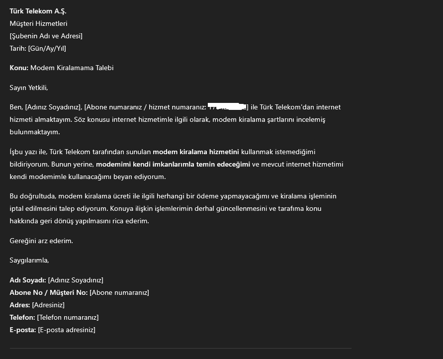 Türk Telekom fiberi iade edip kendi modemini kullanma yolu