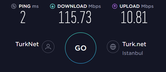 Speed test ilk başlarda 150ye fırlıyor sonra 105 civarı geliyor upload ise 15le başlayıp 10 da sabitleniyor. CSGO için vie.valve.net e 57 ping alıyorum oyunda 60 küsür ping alıyorum.