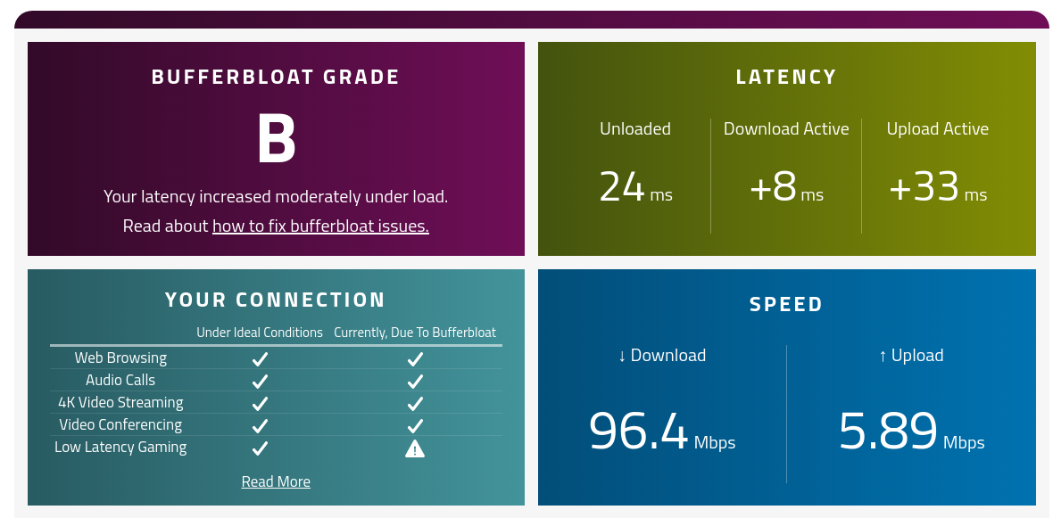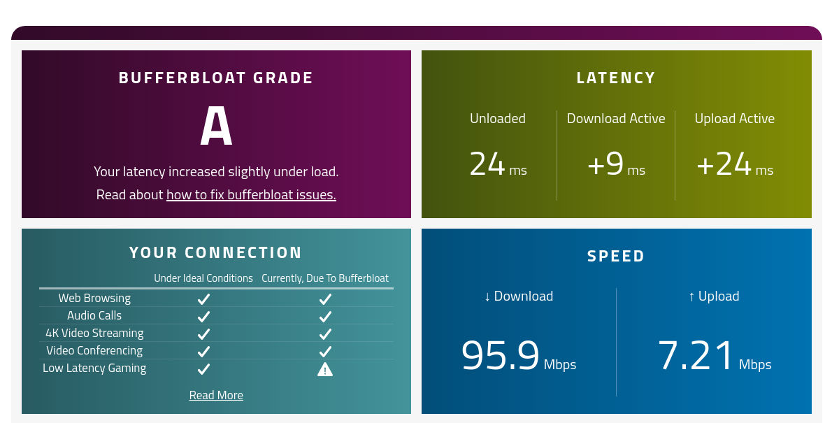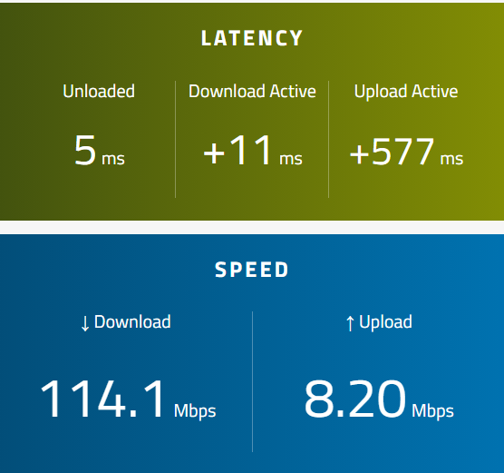 QoS'i kapatınca 105-112 Mbps arası download alıyorum, upload hızı hala aynı.