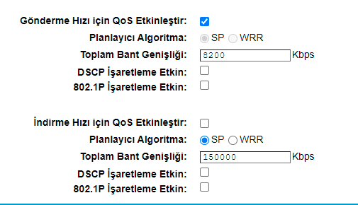 Upload için QoS kullanılmazsa normal bir durum.