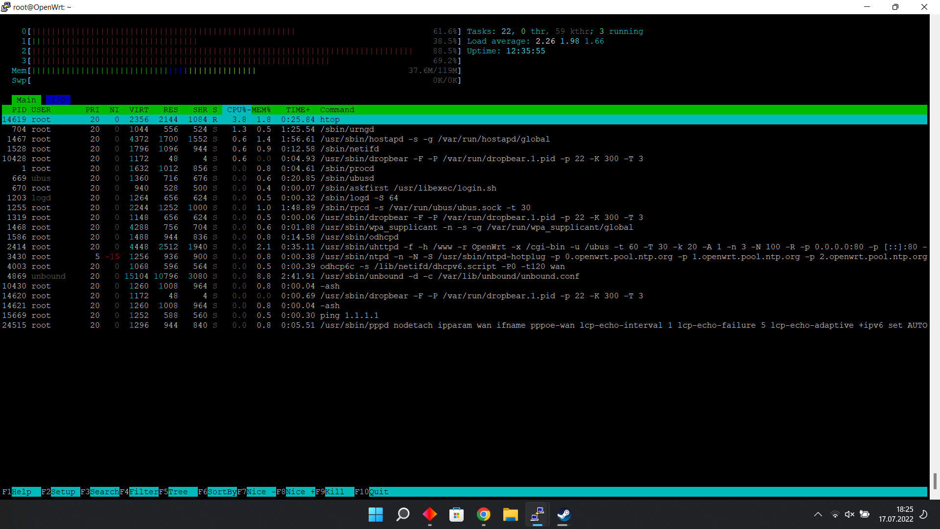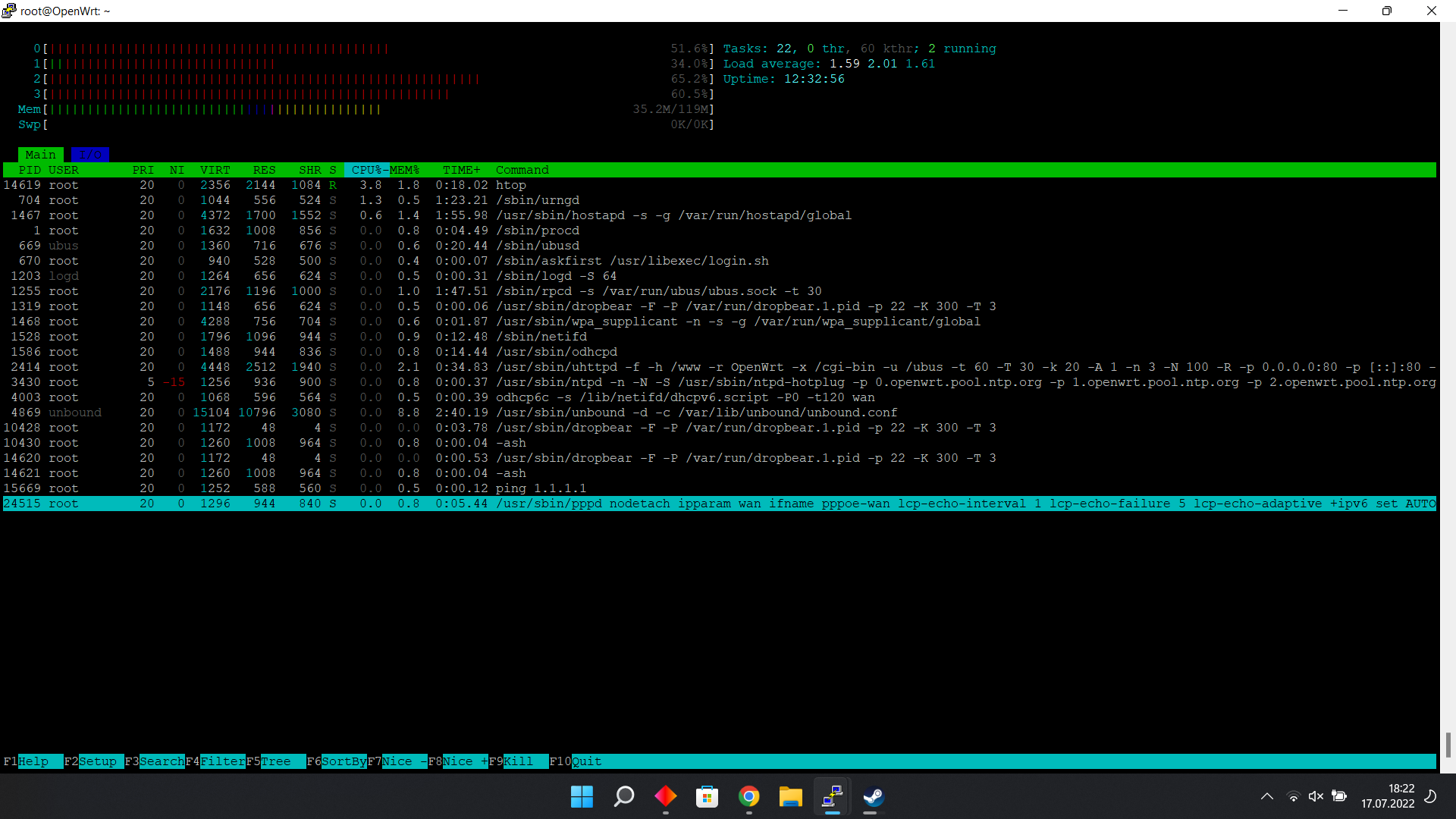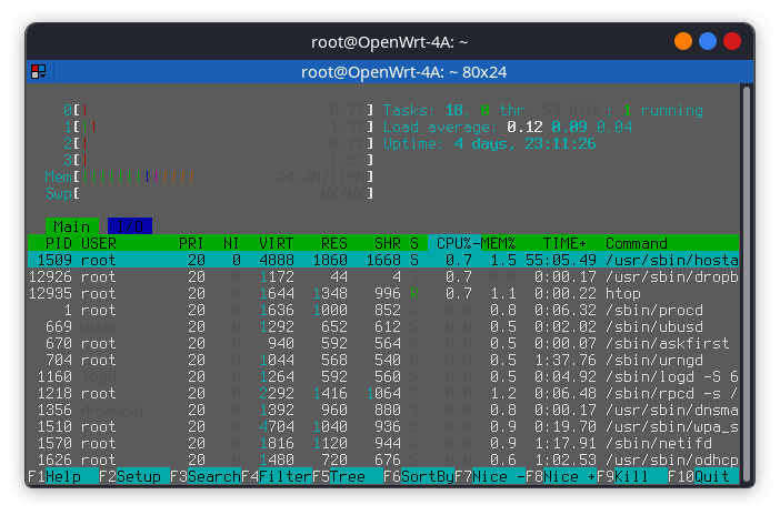 Cihaza SSH ile bağlanıp komut satırı görev yöneticisi olan htop ile daha detaylı CPU ve RAM kullanımına bakabilirsiniz.