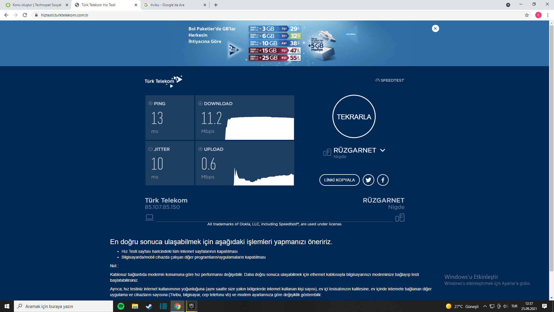 İnternetim TTNET ve Tivibu kullanıyorum. 120 TL de fatura ödüyorum. İnternette bir sorun çıkmıştı, sonra bir adam geldi ve baktı, sorunu çözdü. Hazır bulmuşken sorayım dedim; internet hızım düşük, neden böyle dedim. O da kablolarınız eski, yeniletin, dışarıdan kablo çekin falan bir şeyler dedi. İnternet hızım bu. Sizce bu değerler normal mi? Bana hiç normal gelmedi.