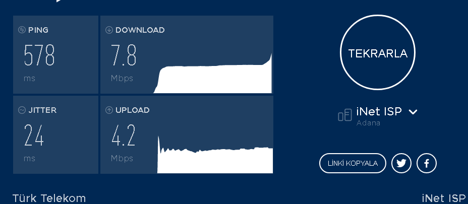 Türk Telekom kullanıyorum 2-3 gündür kesintiler var. Belediye başkanımız bütün ilçeye 1000 Mbps internet vaadinde bulunuyor ben o sırada 1 Mbps hız alıyorum. Gerçekten sinir krizi geçirdim.