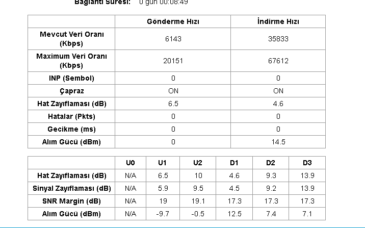 Modem arayüzünde sıkıntı yok gibi fakat sonuç bu.
