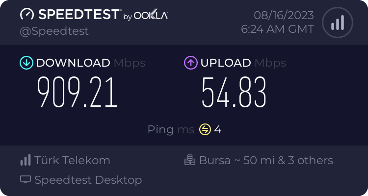 Bulunduğum yerdeki internet hızını 1000'e yükselttim. Upload'ları halen 55 geliyor.