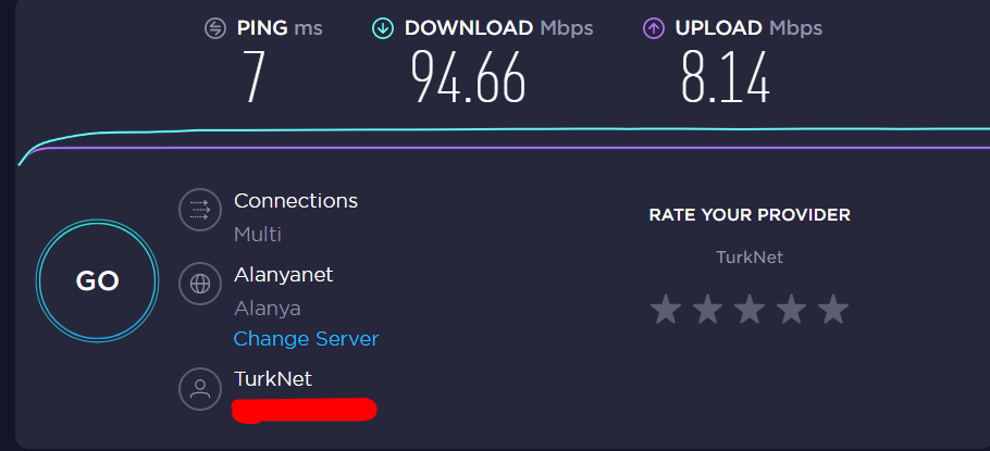 Merhabalar sağlayıcısı Türk Telekom olan 24 Mbps hızındaki internet bana yetersiz geliyordu. Hazır taahhüt süresi de az kaldığı için TürkNet'e geçmek istedim. Bunda bulunduğum mahalledeki altyapının verdiği bir güvende vardı açıkçası. Hız testi bulunduran tüm sitelerde 100Mbps gösteriyordu.