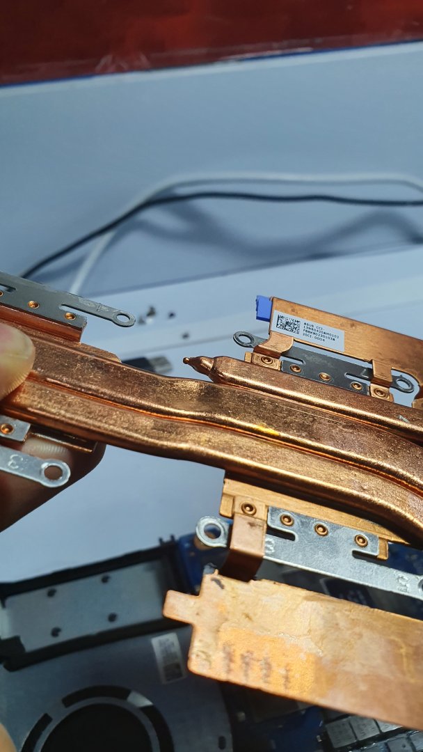 ASUS TUF F15 serisi i5 10300 işlemcili GTX1660 Ti ekran kartlı laptopu geçenlerde ikinci el olarak aldım. En yüksek ayarlarda NFS Heat, GTA V, PES 21 gibi oyunlarda ekran kartı 85-86 işlemci ise 95-96 dereceyi görüyordu sabit olarak. FurMark sonucunda 79 derece oluyordu ve skoru gayet iyiydi yine de. Macunun kuruduğunu düşünüp Cooler Master'ın maker modelini aldım cidden de kurumuştu üstündeki. Ve ekran kartı RAM'lerinin üstünde termal pad yerine koyu bir macun sürülmüştü (ilk ben açtım). Yeni macunu sürdükten sonra yine pek bir şey fark etmedi 3 fan çıkışı da adeta yanıyordu işlemci 85-95 orası oynamaya başlamıştı sadece ekran kartı yine aynıydı. Bugün ekran kartı RAM'lerin üzerine aldığım termal padler geldiği için tekrar açıp macuna da bir miktar ekleme yaptım sürüşüm gayet iyiydi. Bakır borunun sağ tarafı bir miktar havada gibi duruyordu ve yerine tam oturmuyordu ben de orayı eğip düzeltmek istedim ve fotoğraflarda görünen boruda bir göçme meydana geldi zorlamadığım halde. Sıcaklık yine aynı olunca kapağı bakırı kontrol etmek için geri açtım. Maker model macun bitti evde 20 liraya satılan o sarı termal macundan vardı ondan sürmek zorunda kaldım şu an işlemci 99 ekran kartı 92'leri görüyor buna rağmen fanlardan eski sıcaklık çıkmıyor ve bu sahte macunu sürdüğüm için de borudan mı macundan mı kaynaklı bir sorun var anlayamıyorum kafayı yemek üzereyim. Boruyu çıkarıp bir ucundan fön makinesiyle ısı verdiğim zaman her bir yanı el değmeyecek kadar ısınıyor yani ısıyı iletiyor. Cooler Master'ın macunu sahte veya tarihi mi geçmişti de bu sıcaklıkları o da düşüremedi? Şu an bakırın ısınabilme yetisi olmasına rağmen fanların gereken sıcağı veremeyişi çakma macundan mıdır? Genel olarak tüm bunlara fotoğraflara bakılınca boruda sıkıntı var denilebilir mi? Boruda sıkıntı yoksa bana piyasadaki en kaliteli termal macunu önerir misiniz?