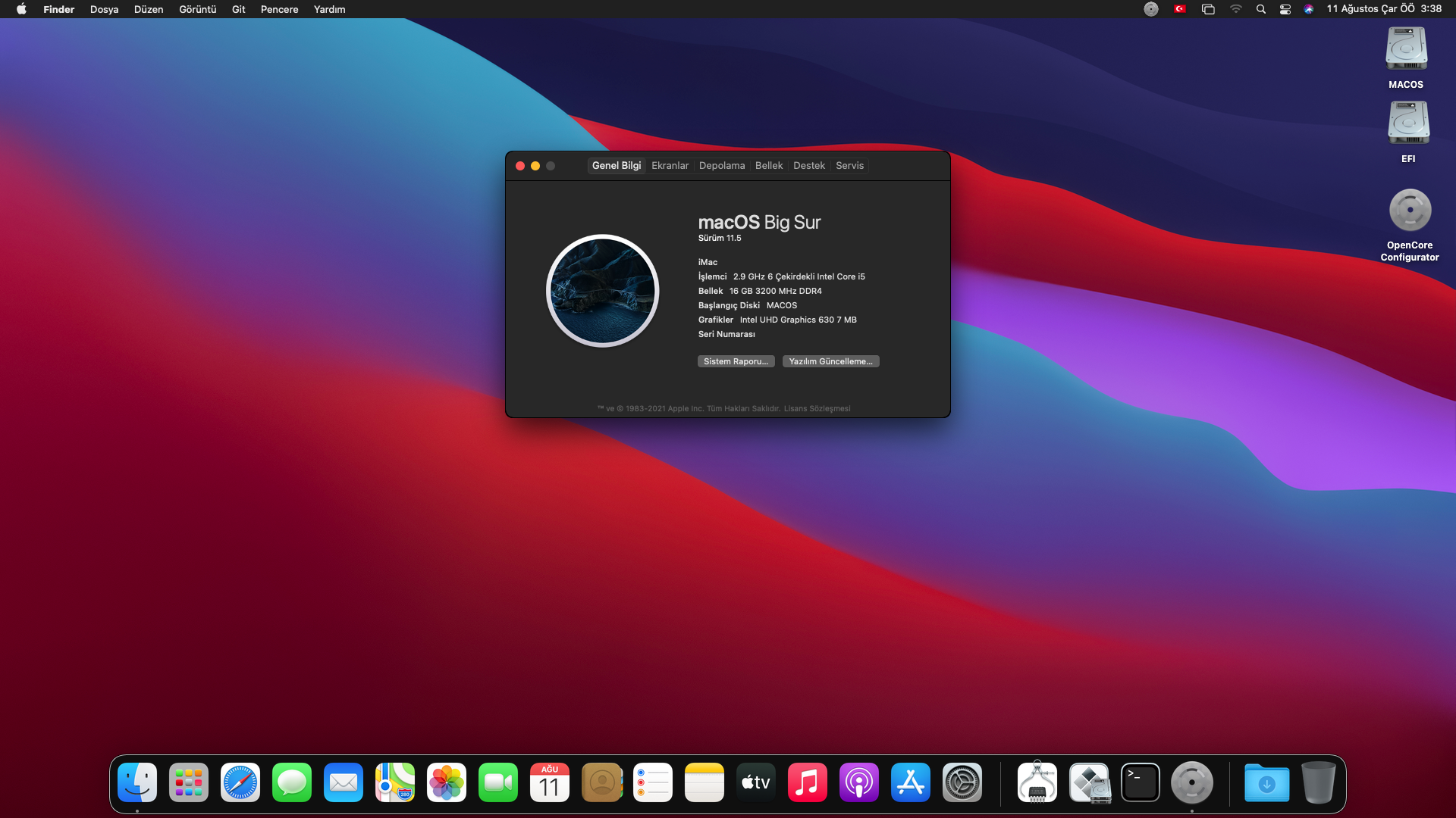 UHD 630'u basit şekilde tanıtabiliyoruz aslında. Sadece HDMI üzerinden görüntü almak biraz sorun . Hackintool ile kolaylıkla yapabilirsiniz. Diğer konulara gelecek olursam aslında sizinle güncel EFI dosyamı paylaşsam her şey yüklü ve stabil olur ama çok fazla özelleştirilmiş ayar ve bilgiler var. Ama şöyle bir şey yapabiliriz, şu anki EFI dosyanızı benimle paylaşın ben kendi cihazımdaki ile aynı ayarları yapayım, hatta UHD 630 yaması da yaparım isterseniz. O kadar çok yaptım ki ezberledim.