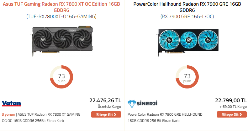 kararsız kaldım. RX7800 ASUS TUF vs. RX7900GRE Power color hellhound.