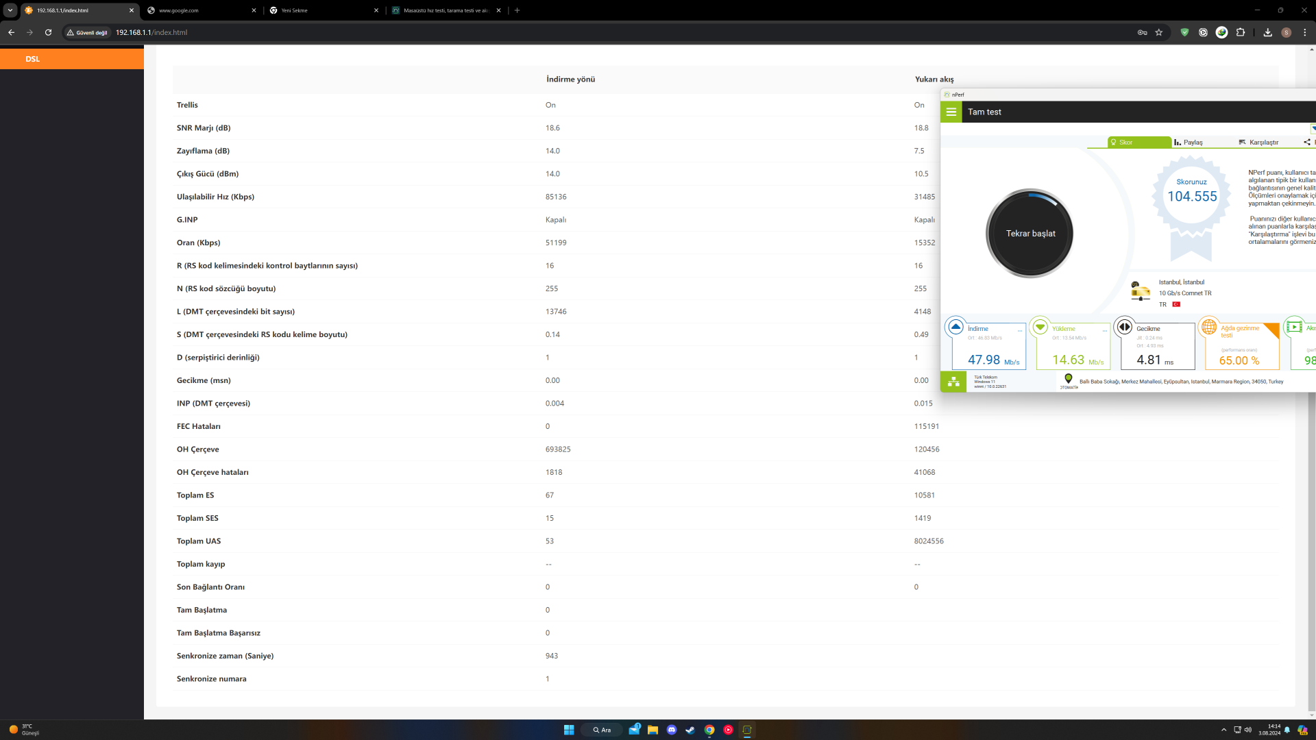 Merhaba Tenda V12 modem ile 50Mbps internet kullanmaktayım servis sağlayıcım TTNET, daha öncesinde 100 Mbps'lik paket kullanıyordum yaklaşık bir yıl kadar kullandım 88 Mbps civarında indirme hızı alıyordum herhangi bir kopma problemi mevcut değildi, kopmalar başladıktan sonra internet hızımı da düşürdüm ancak herhangi bir çözüme kavuşmadı. Gün içinde bazen internetimde kopma başlıyor sürekli gidip geliyor ama her zaman olmuyor şu an modemden şüphelenmekteyim sorun yaklaşık bir aydır mevcut iki defa ISS değişikliği yaptım sorun çözülmedi, saha ekipleri ile konuştuğumda sorunun modem kaynaklı olabileceğini veya hızdan dolayı olabileceğini söylediler deneme amaçlı hızı 50Mbps'e düşürdüm ama sorun çözülmedi. Konu hakkında destek rica etmekteyim.