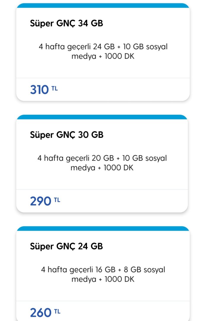 150 TL'ye 6 GB + 600 DK çıktı. Birde Süper GNÇ paketleri geldi. Eki Görüntüle 1957303