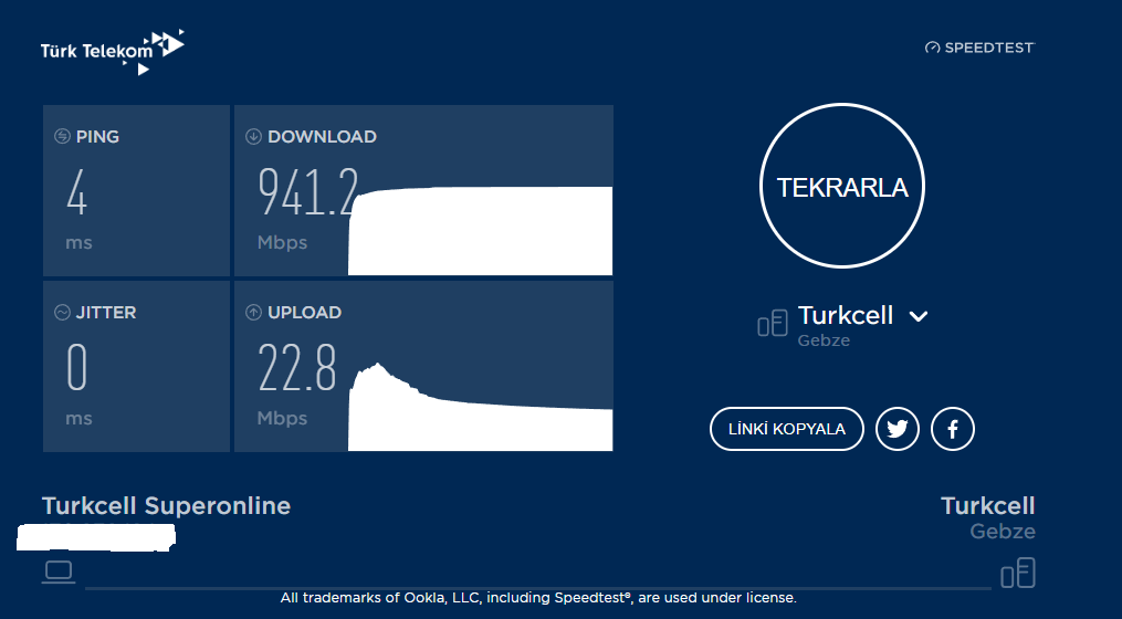 Bu arada konuda belirtmemişim upload hızı aynı onda bir değişiklik yok.